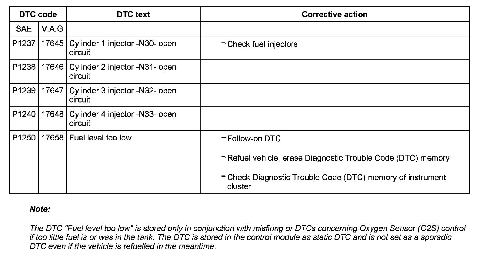 DTC P1237 - P1250:
