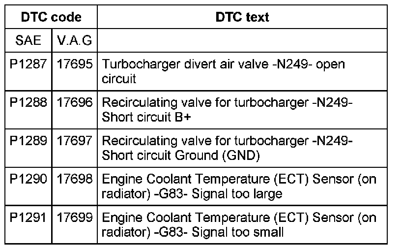DTC P1287 - P1291: