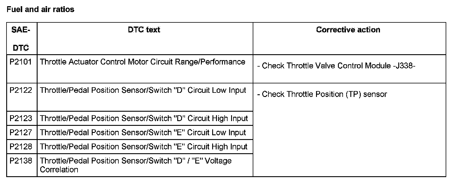 DTC P2101 - P2138: