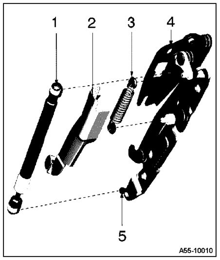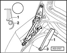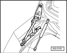 - Lift retaining springs in succession on both ends using screwdriver and remove gas-filled strut.
