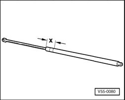 - Clamp gas-filled strut in vice area x. Dimension of - x - = 50 mm (2 in.).
