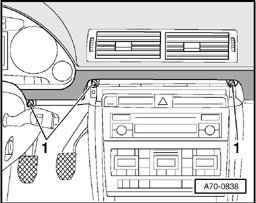 - Pull off right instrument panel cover - arrow - using special hook 3370.