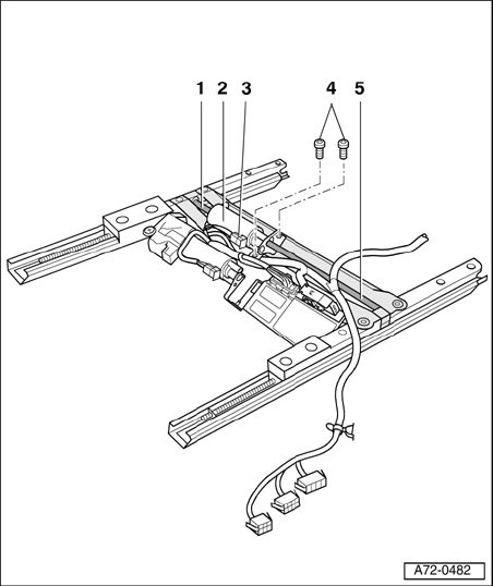 - Disengage seat fore-aft adjustment motor - 2 - from both shafts - 1 - and - 5 -.