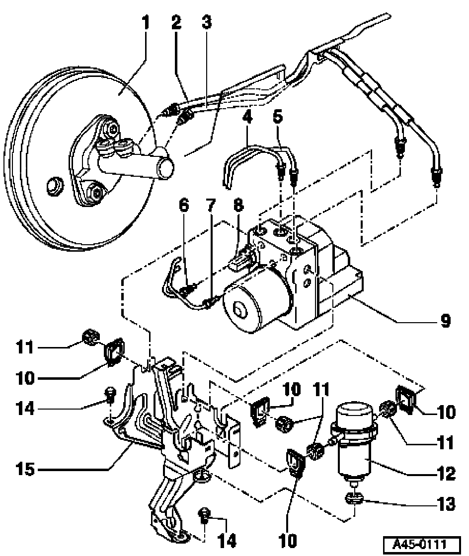 ^ Hydraulic unit to front left brake caliper