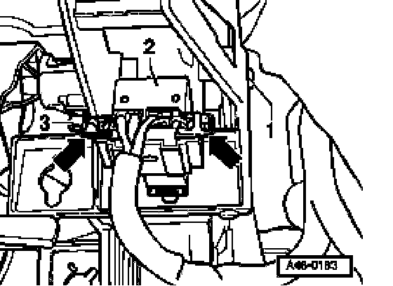 - Press together connector -1- in the direction of the arrow and disconnect the brake light switch