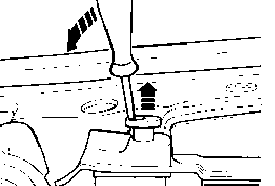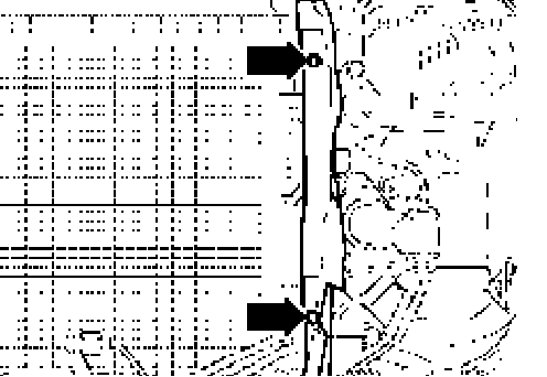 ^ Release two retaining bolts for radiator and pull out upward -arrows-.