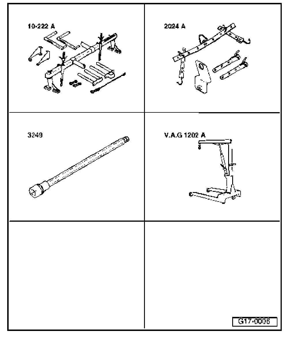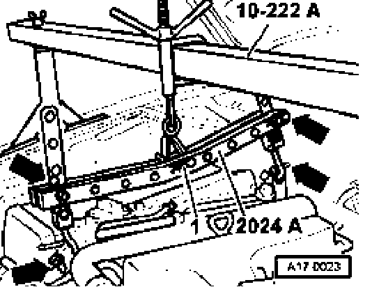 ^ Lower subframe slowly using workshop crane VAG 1202 A