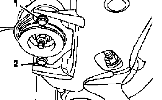^ Mark positions of bolted connections -1- and locating sleeves -2underneath right and left engine mounts.