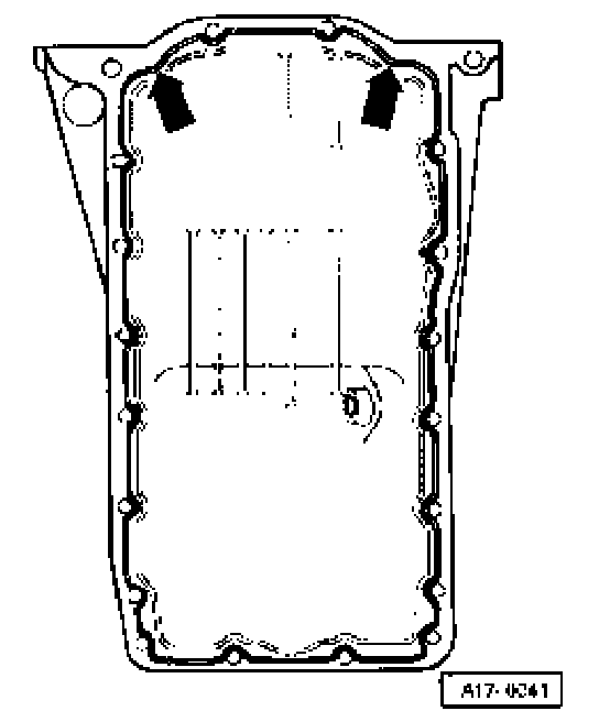 ^ Apply silicone sealant to clean sealing surface of oil pan, as illustrated. (Illustration shows position of sealant bead on cylinder block )