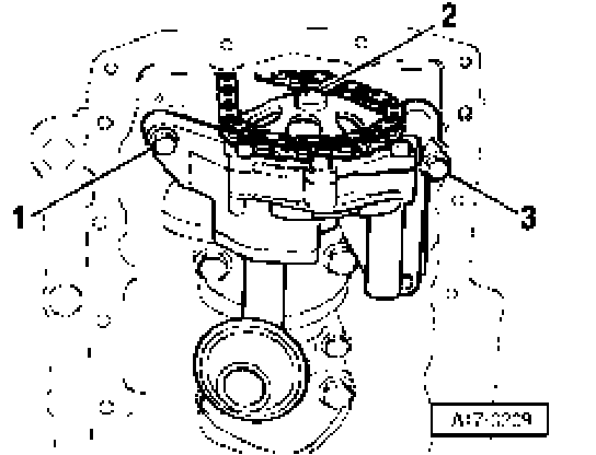 ^ Remove bolt-2-. - Remove chain sprocket from oil pump shaft.