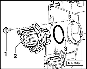 - Insert coolant pump into cylinder block and tighten securing bolts - 1 - .
