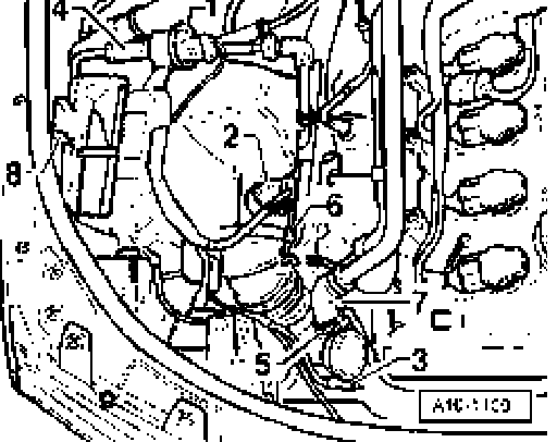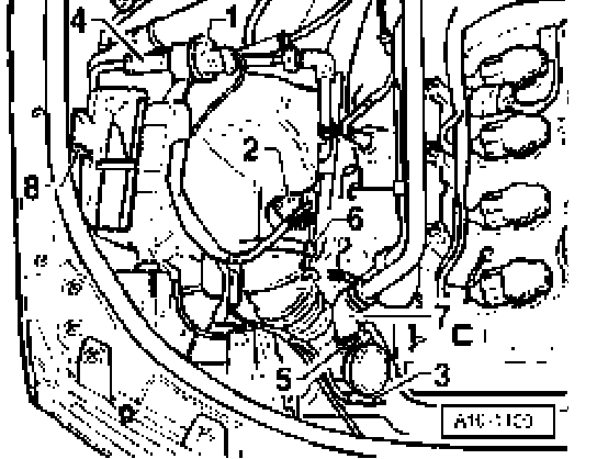 ^ Pull front hose off line to secondary air combination valve -1-.