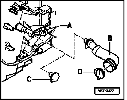 - On vehicles without glove compartment cooling the opening -A- is closed with a plug -C-.