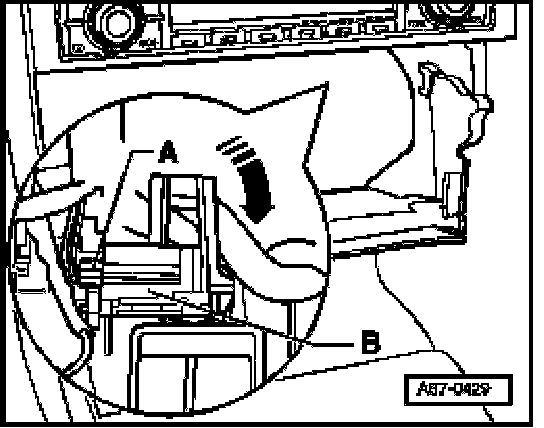 - Turn vent temperature sensor -B- approx. 90 degrees in direction of arrow.