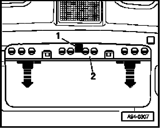 - Unplug connector -1- at high-mount brake light -2-.