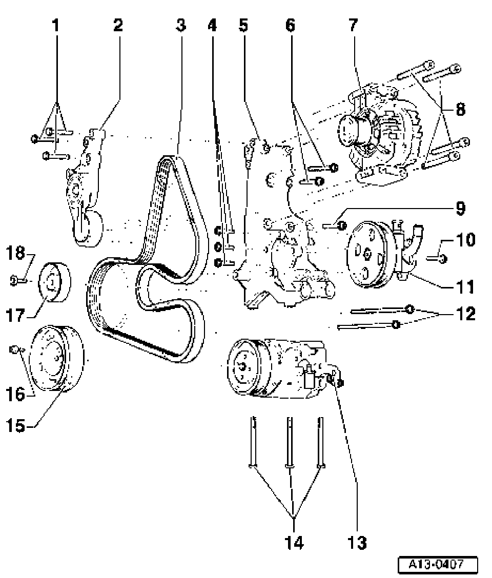 ^ Secured to bracket for generator, vane pump and air conditioner compressor