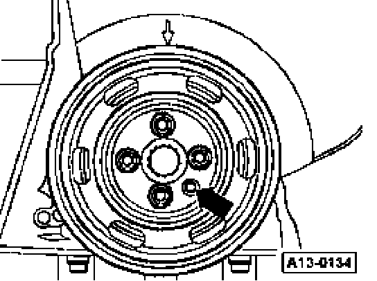 ^ Vibration damper can only be installed in one position: Hole -arrow in vibration damper must fit over projection on toothed belt sprocket.