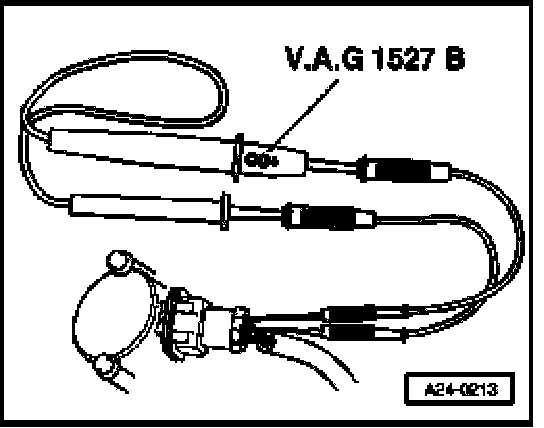 - Connect LED voltage tester V.A.G 1527 B between receptacle 2 (Camshaft Position (CMP) sensor -G40- signal) and receptacle 1 (B+).