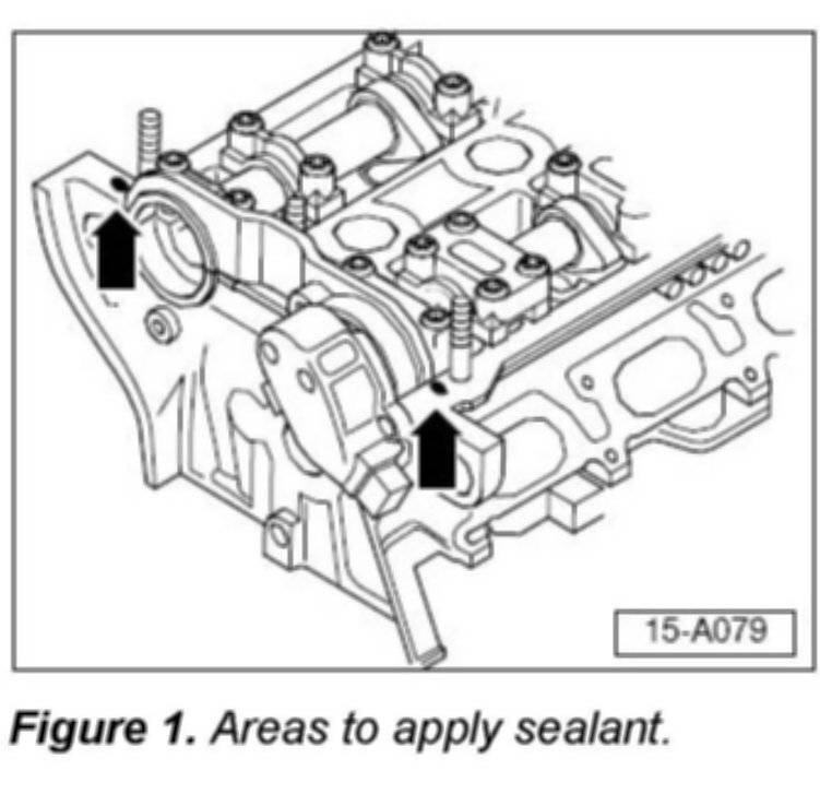 Apply small quantity of sealant Part No. AMV 174 004 01 to sides of joints (Figure 1, arrows) on upper sealing surface of cylinder head.