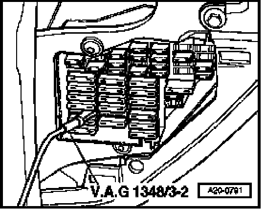 - Connect e.g. VAG1348/3A remote control connection using adapter cables from VAG1348/3-2 at right terminal of socket from fuse S228 (position 28).