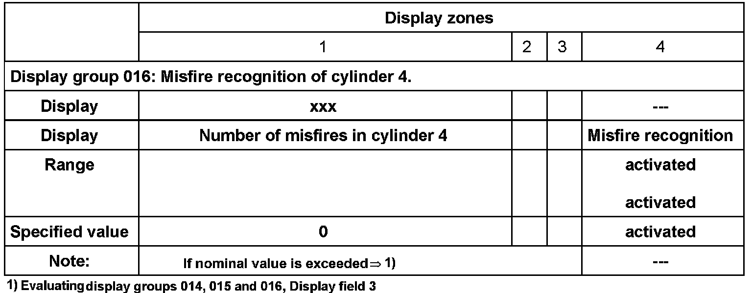 - Check misfire recognition in display zones -1- to -4-.