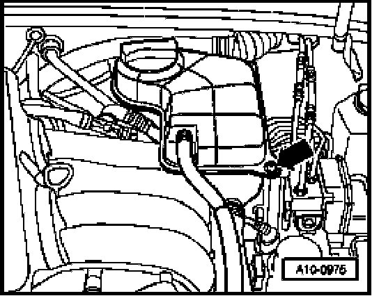 Coolant reservoir screw (arrow) must be removed and coolant reservoir must be placed to the side in order to access harness connector. The coolant hoses remain connected.