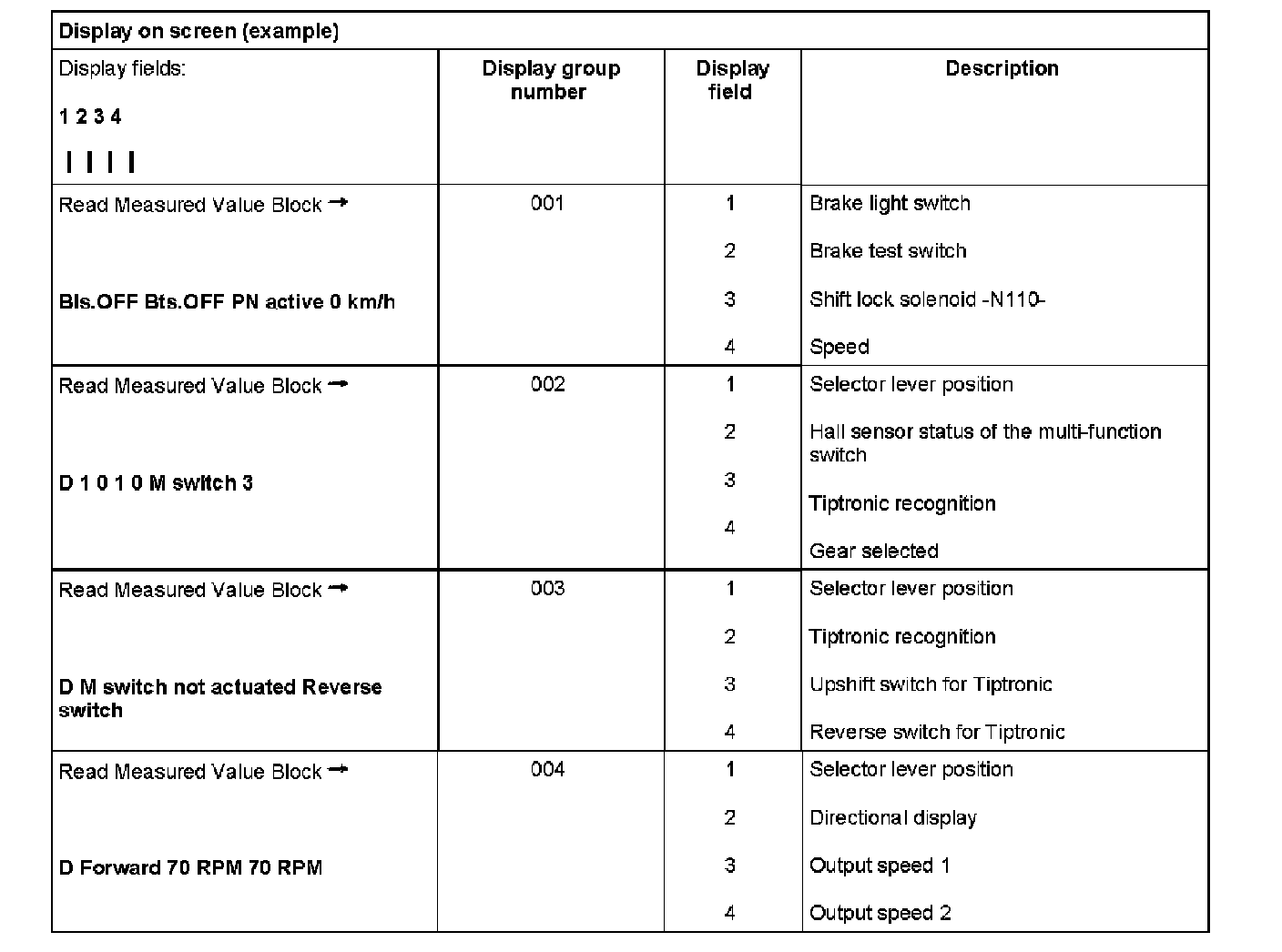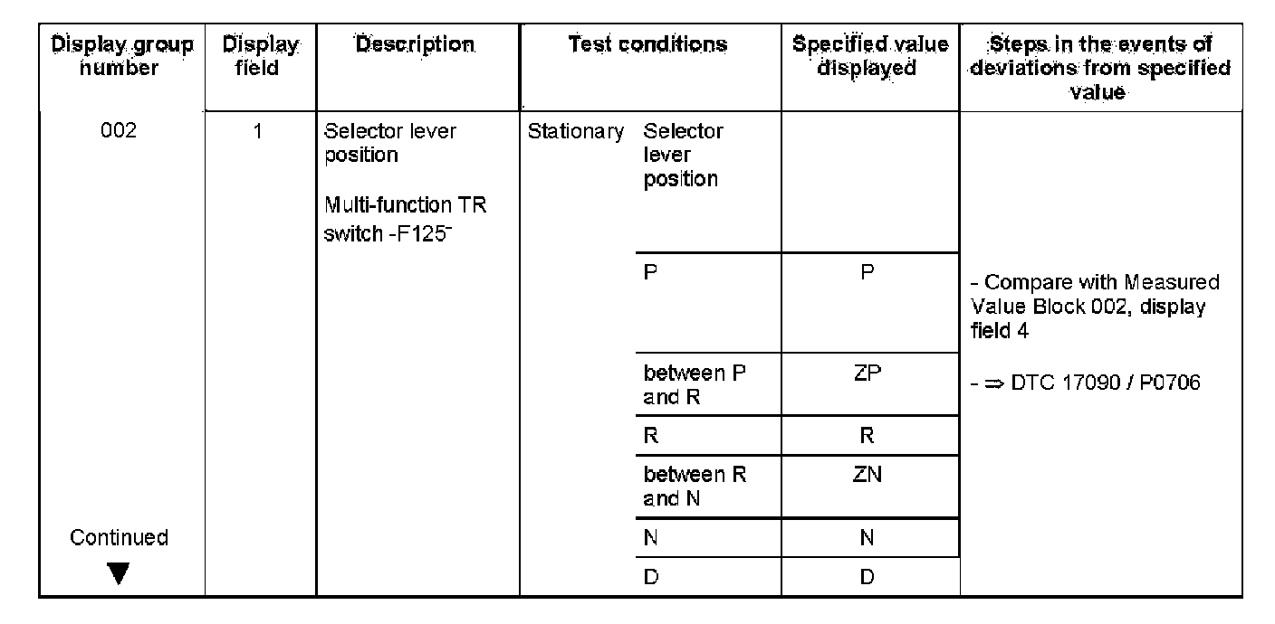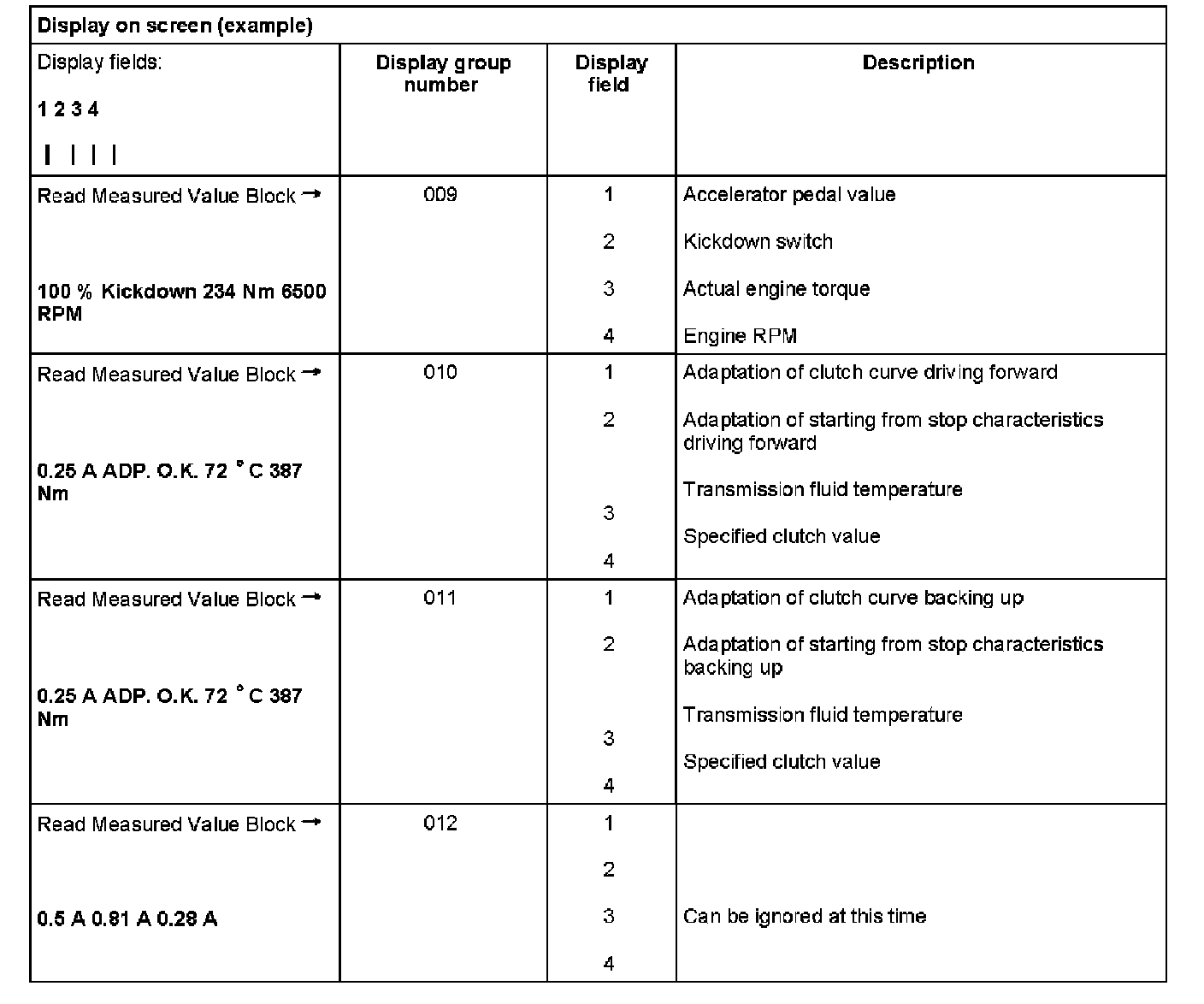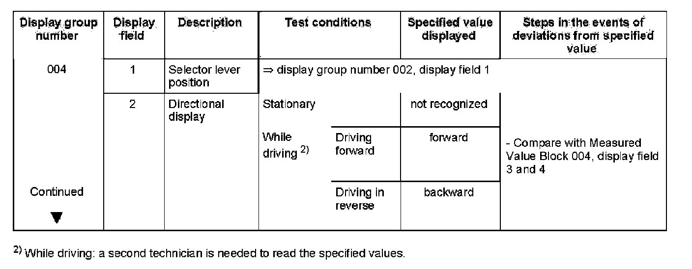 ^ Check whether transmission fluid temperature in display field 3 is higher than 60°C. A short test drive may be necessary to reach this temperature.