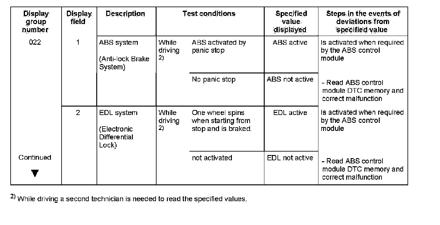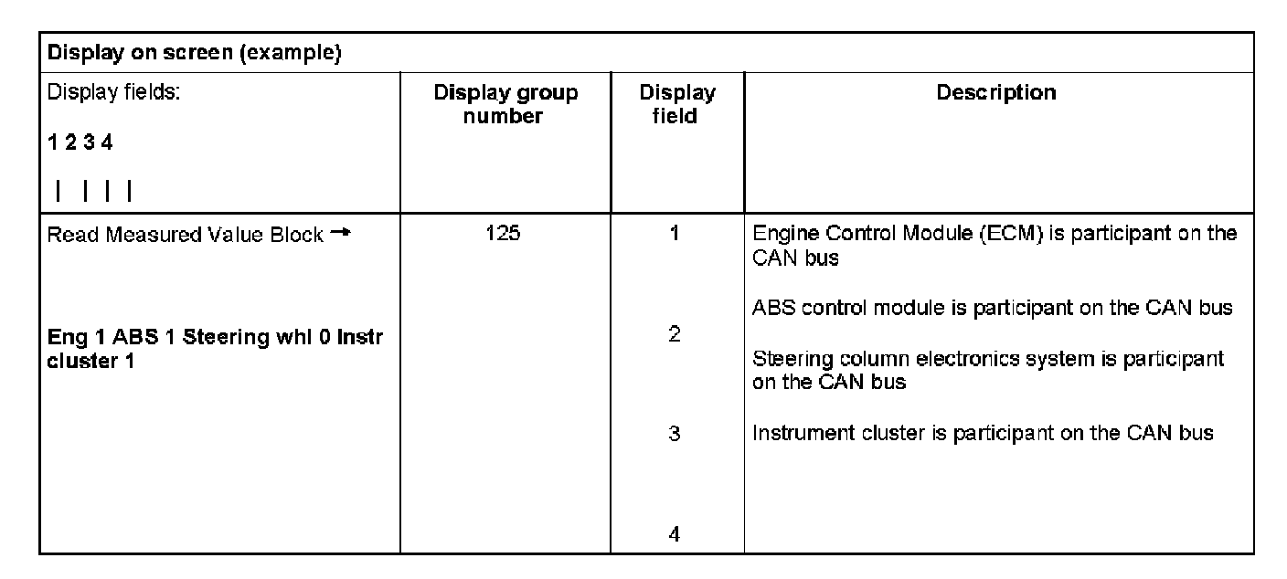 Note: The legend for the values in the individual display fields can be found under- "Test Chart for Measured Value Blocks".