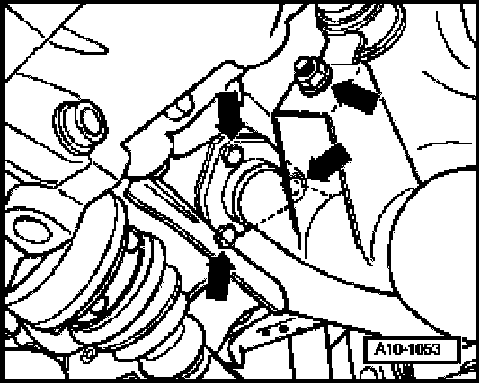 - Remove heat shield above right drive axle, to do so, remove bolts (arrows).