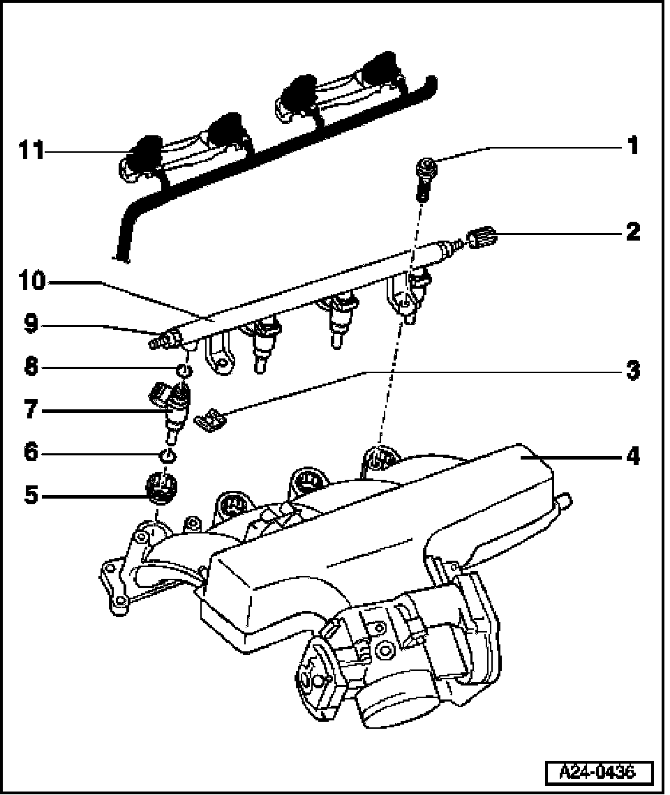 NOTE: To prevent damage to catalytic converter the fuel system must be bled after repair work on fuel distributor or on fuel lines. The vehicle must only be started after bleeding.