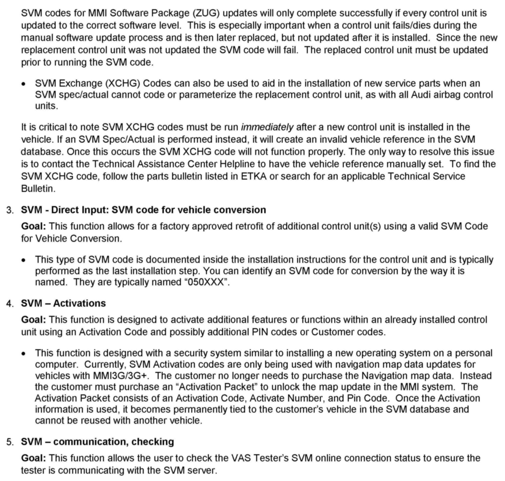 2. Update the ECM (J623) using the SVM action code as listed in the table above if necessary.