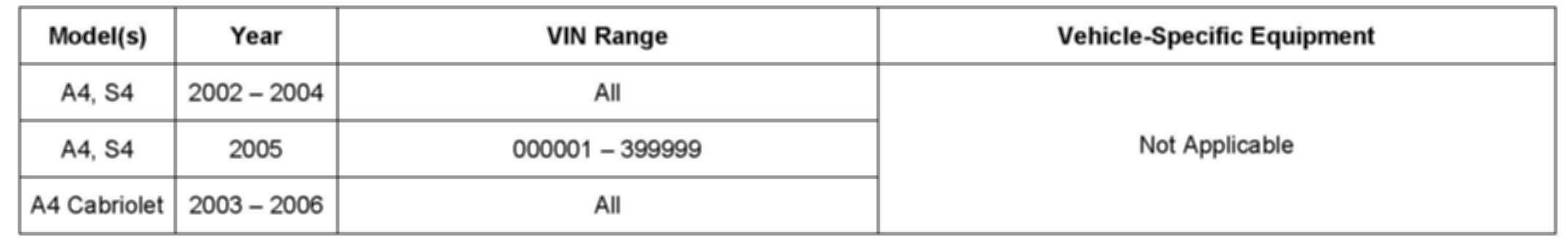 This TSB is informational only and not applicable to any Audi warranty.