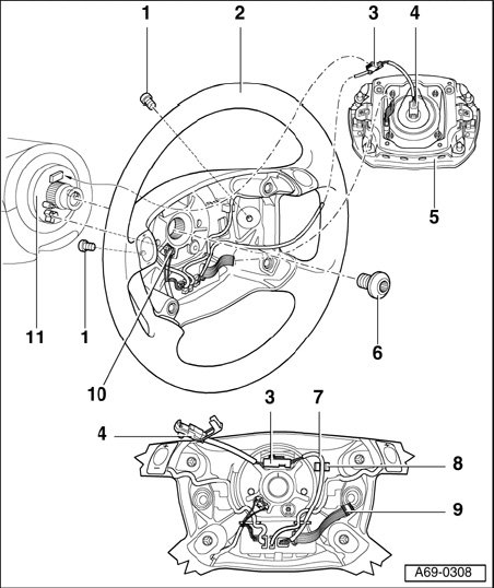 Airbag Unit, Removing and Installing (Multi-Function Steering Wheel)