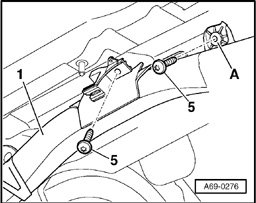 - Tighten bolt - 1 - on bracket - 5 -.