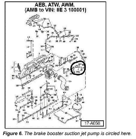 - Inspect and replace brake booster suction jet pump (Figure 6) if clogged.