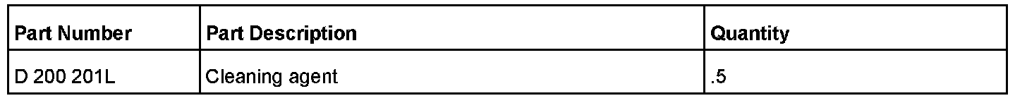 - Add 0.5 liter of the D 200 201L cleaning agent to the warranty claim.