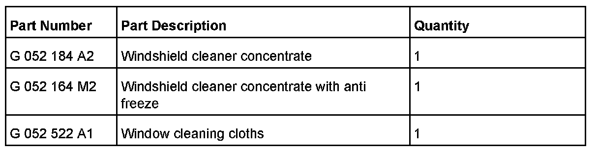 - For the summer season in particular, use Windshield Cleaner Concentrate part number G 052 184 A2