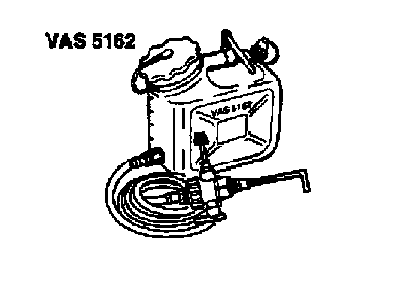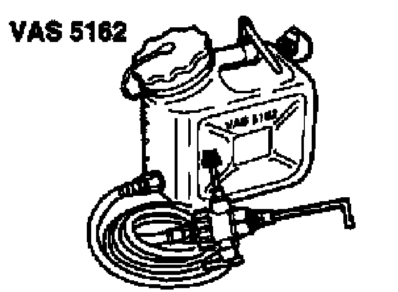 - Attach filled reservoir of ATF charging device VAS 5162 at highest possible point on vehicle.
