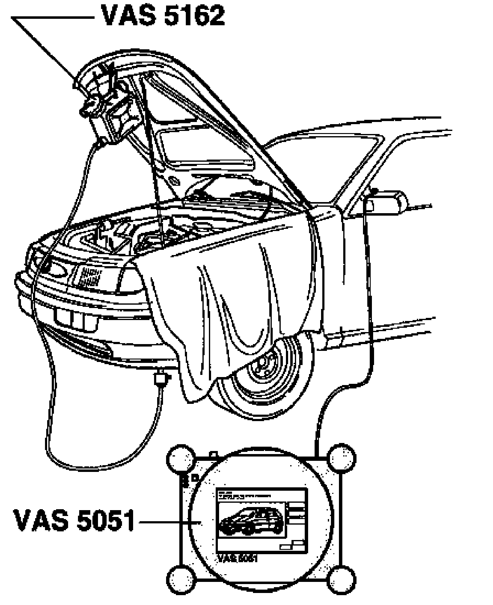 - Vehicle diagnostic, testing and information system VAS 5051 connected, vehicle self-diagnosis mode activated and vehicle system