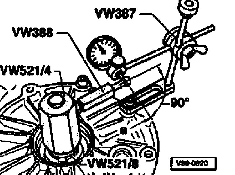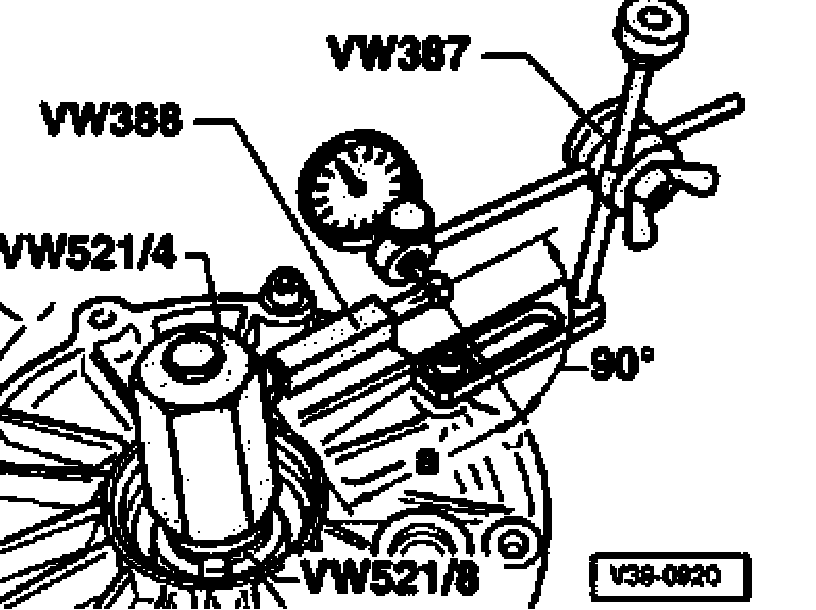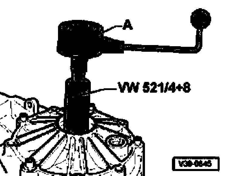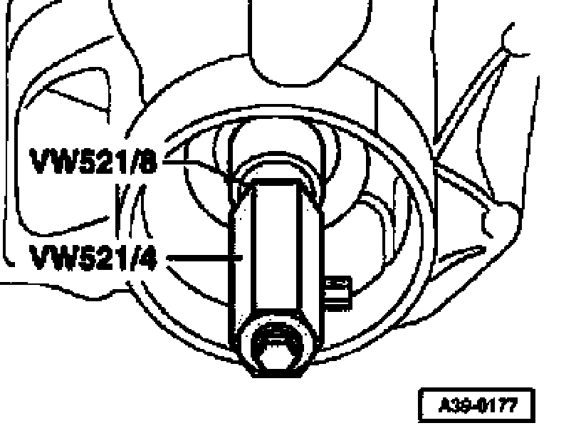 - Install special tools VW 521/4 and 521/8 onto housing side in differential housing.