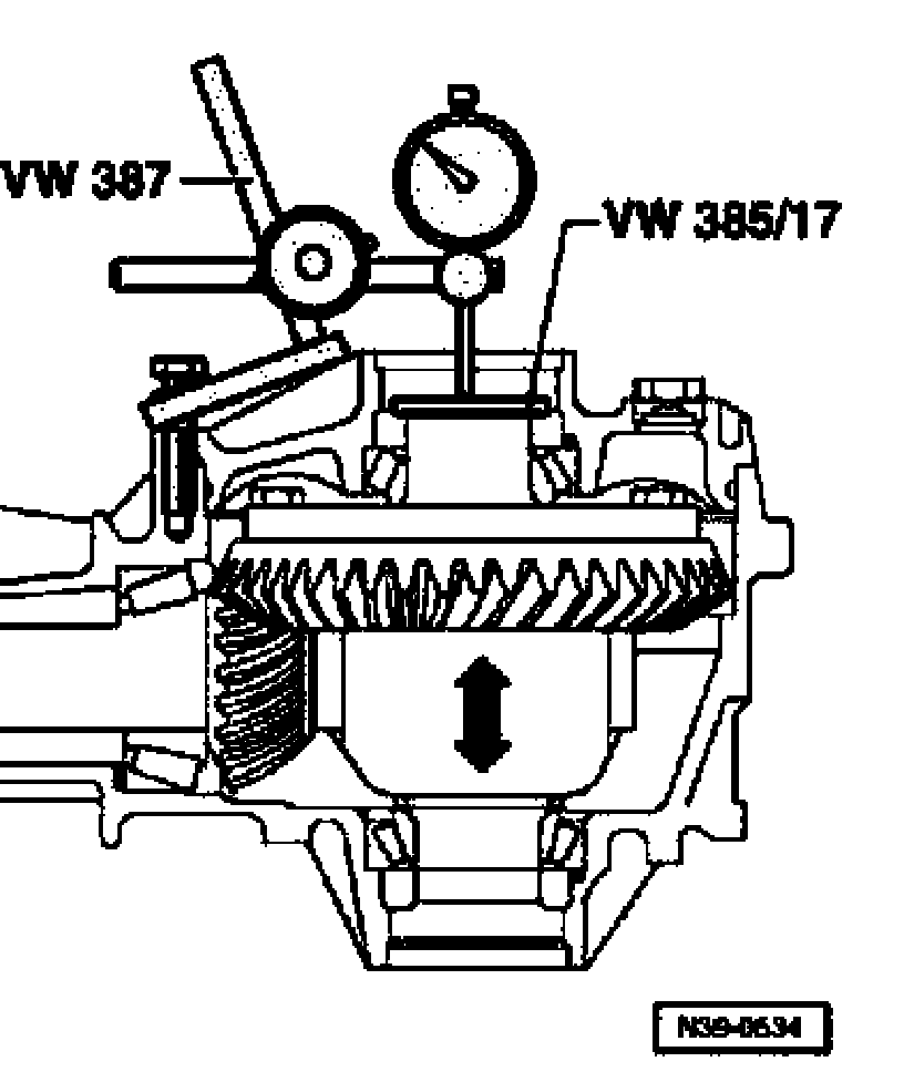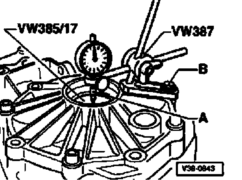 - Use dial indicator extension VW 382/10 (6 mm flat).