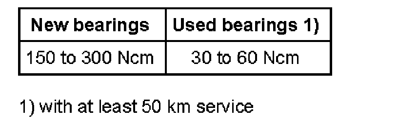 ^ Differential taper roller bearings are low friction bearings. Therefore the frictional torque only has a limited use as a check. Correct adjustment is only possible by determining the total shim thickness "S total"