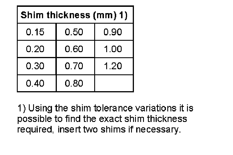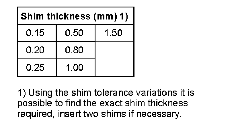 - Determine shim(s) as accurately as possible from table. Part numbers