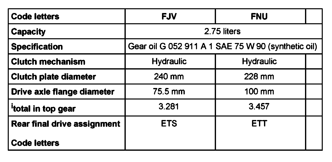 Note: Additionally, the code letters of the transmission are embossed on the underside of the transmission cover and listed in the data carriers of the vehicle.
