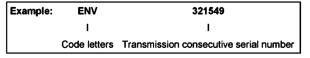 Code letters and transmission consecutive serial number -arrow 1-