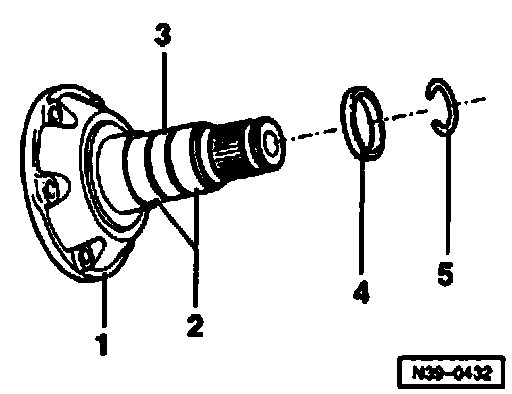- Clamp drive flange with soft jaws in vice. Press circlip out of drive flange groove using new circlip -A-.