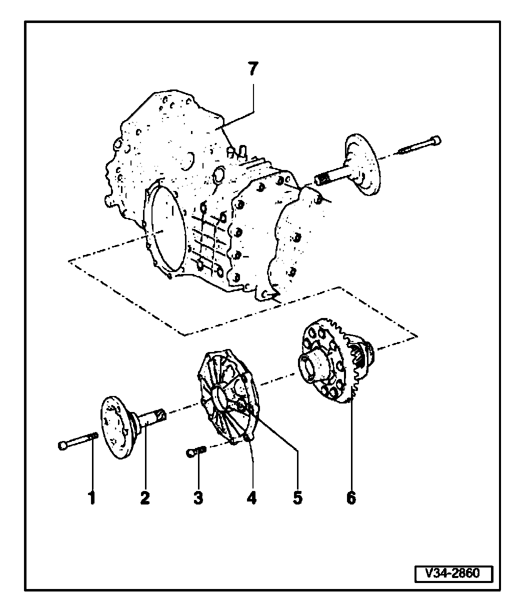 Note: The differential can be removed and installed with the transmission installed.