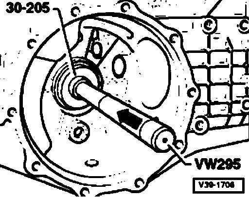 - Pull out flanged shaft seal with VW 681.