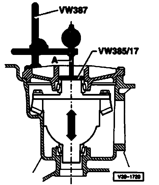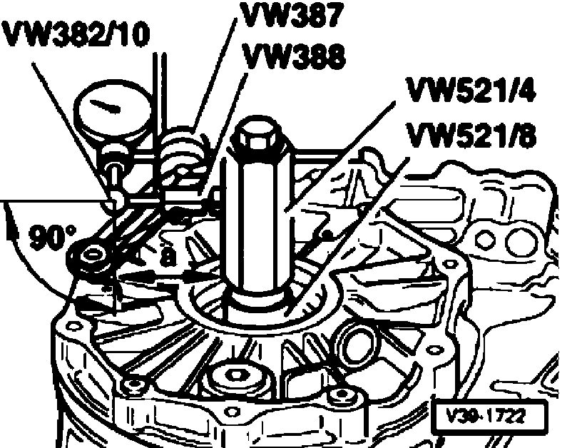 - Use dial gauge extension VW 382/10 (6 mm flat).