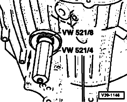 - Move differential up and down with special tool VW 521 (direction of arrow).